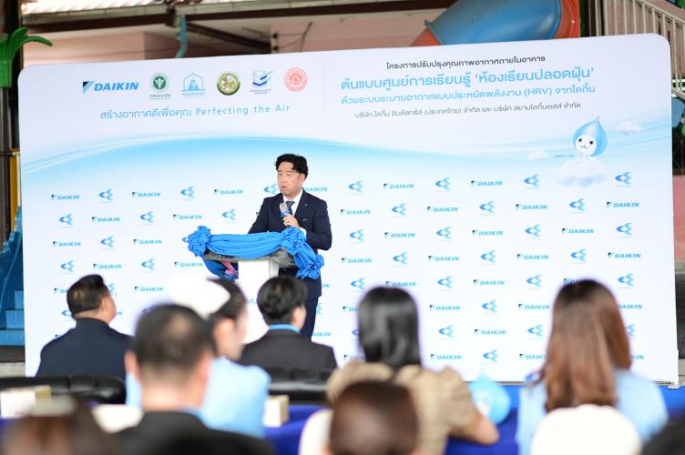 นายคาสุฮิสะ ฮินาสึ กรรมการบริษัท ไดกิ้น อินดัสทรีส์ (ประเทศไทย) จำกัด กล่าวว่าโครงการนี้คือความตั้งใจของไดกิ้นที่เติบโตเคียงคู่สังคมไทยมานานหลายทศวรรษ ภายใต้แนวคิด "Perfecting the Air – สร้างอากาศดีเพื่อคุณ" เพราะบริษัทเชื่อว่าอากาศที่ดีไม่ได้หมายถึงเพียงแค่ความเย็นสบาย แต่ต้องเป็นอากาศที่สะอาด ปลอดภัย และส่งผลดีต่อสุขภาพอย่างแท้จริง โดยเฉพาะกับเด็กเล็กในศูนย์ฯ ที่อยู่ในห้องเรียนปิดเป็นเวลานาน เสี่ยงต่อการสะสมฝุ่น PM2.5 และก๊าซ CO2 ที่เกินมาตรฐาน การส่งมอบห้องเรียนปลอดฝุ่นครั้งนี้ จึงเปรียบเสมือนการวางรากฐานสุขภาพและการเรียนรู้ที่แข็งแรงให้กับเยาวชนไทย ในการส่งมอบครั้งนี้ ไดกิ้นได้ติดตั้งระบบปรับอากาศและระบบระบายอากาศที่มีประสิทธิภาพสูง สามารถช่วยลดปริมาณฝุ่นละอองขนาดเล็ก PM2.5 และก๊าซคาร์บอนไดออกไซด์ที่เกินค่ามาตรฐาน พร้อมทั้งเสริมด้วยชุดเติมอากาศบริสุทธิ์ (Outdoor Air Processing Unit: OAPU) และเซ็นเซอร์ตรวจวัดคุณภาพอากาศ เพื่อให้ครูและผู้ดูแลสามารถเฝ้าระวังได้ทันทีผ่านระบบแบบเรียลไทม์